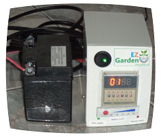 ตั้งเวลาที่ EZ Control ให้ปั๊มทำงานทุกๆ 4 นาที และหยุด 4 นาที ระบบของ EZG Hybrid Aeroponics ใช้ไฟกระแสตรง 12 โวลท์ จึงปลอดภัยจากไฟรั่ว ไฟดูด และมีแบตเตอรี่สำรองไฟ ระบบควบคุมจะสลับแหล่งจ่ายไฟโดยอัตโนมัต เมื่อไฟฟ้าหลักขัดข้อง