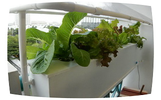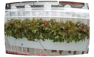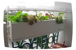 รูปอีซี่กร์เด้น ไฮบริดแอโรโปนิกส์ (แนวราบ) ติดตั้งที่ราวระเบียงคอนโดมิเนี่ยม